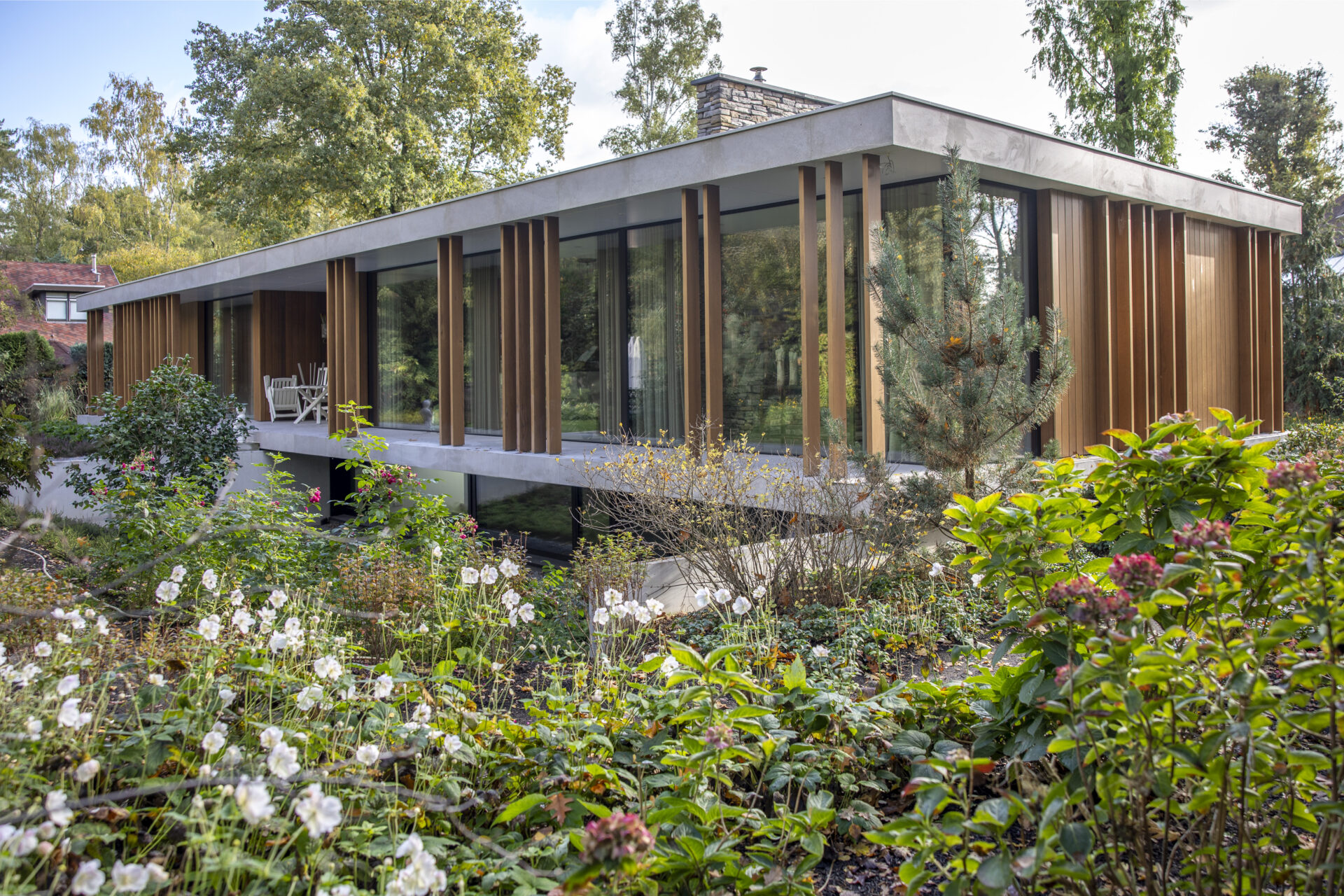 Voor deze villa realiseerden we een moderne woning die volledig opgaat in het groen, mét een kelder onder de woning. De unieke zwevende terrassen verbinden de villa met het omliggende landschap en versterken het gevoel van rust en ruimte. Een project waarin architectuur en natuur naadloos samenkomen.